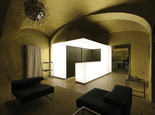 un volume scatolare retroilluminato caratterizzato da astrattezza,